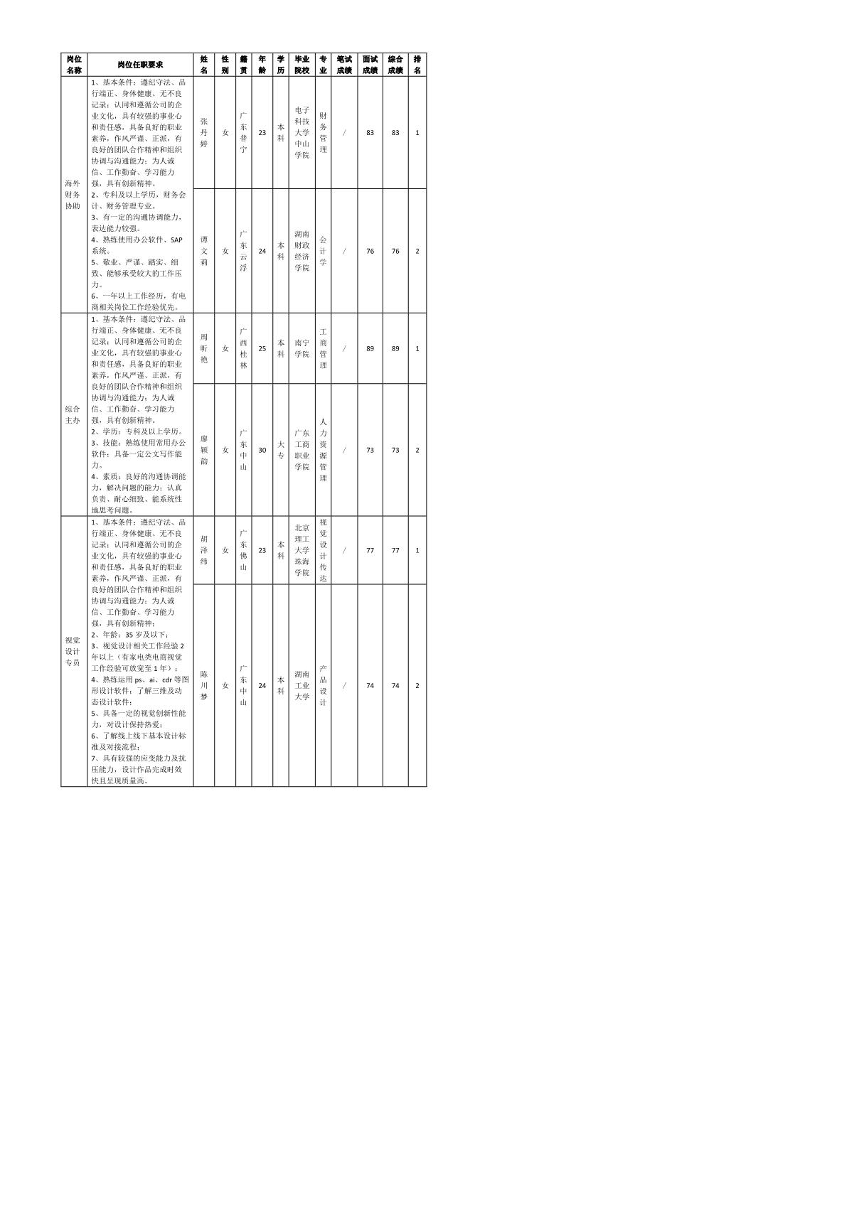 根據(jù)長虹·美菱國際區(qū)品牌運營中心發(fā)布的招聘公告及招聘相關(guān)規(guī)定,經(jīng)面試等程序,現(xiàn)將測試成績予以公示。