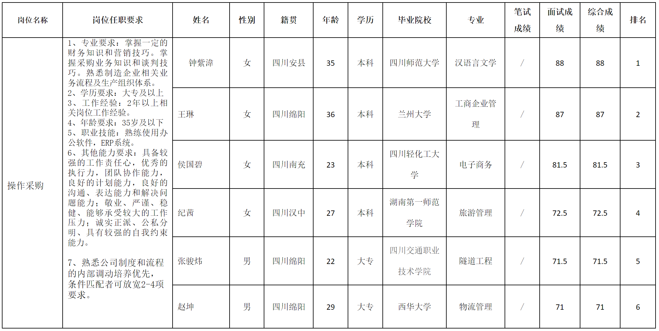 根據(jù)四川愛(ài)創(chuàng)科技有限公司發(fā)布的招聘公告及招聘相關(guān)規(guī)定,經(jīng)面試等程序,現(xiàn)將面試成績(jī)予以公示。
