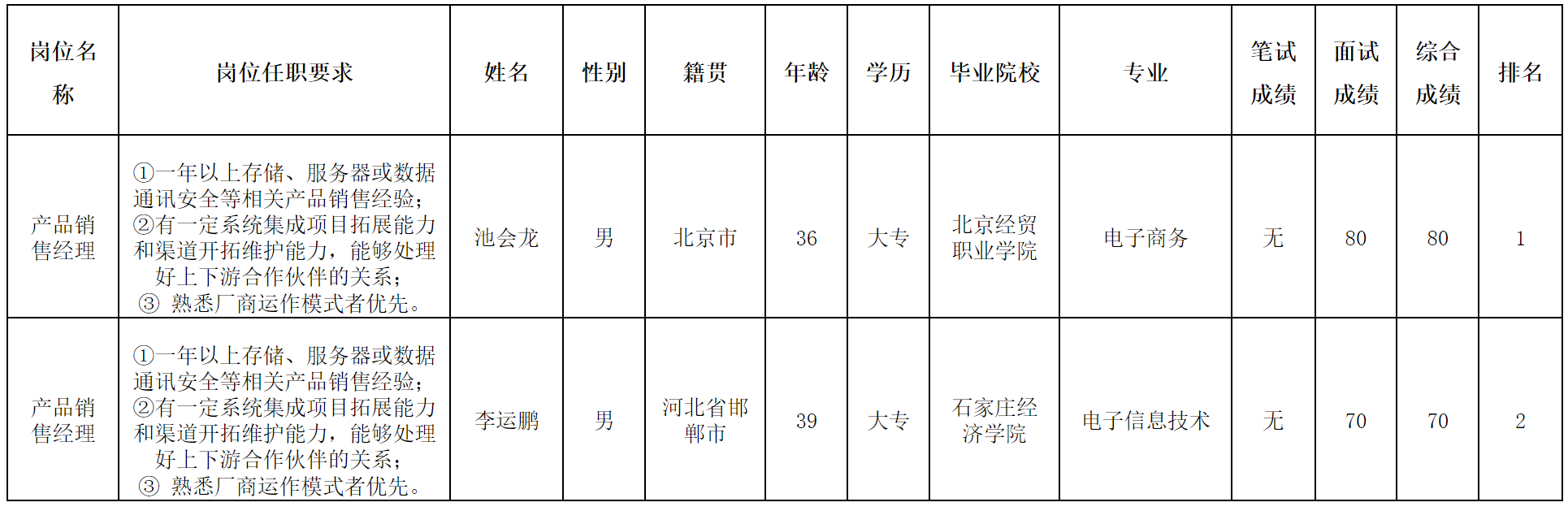 根據(jù)四川長虹佳華信息產(chǎn)品有限責任公司發(fā)布的招聘公告及招聘相關規(guī)定,經(jīng)筆試、面試等程序,現(xiàn)將筆試(面試)成績予以公示。