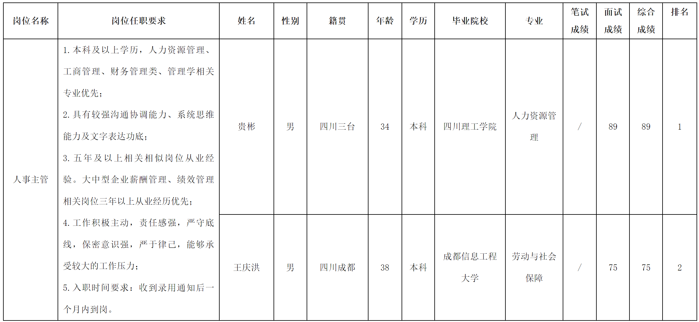 根據(jù)四川虹信軟件股份有限公司發(fā)布的招聘公告及招聘相關(guān)規(guī)定,經(jīng)筆試、面試等程序,現(xiàn)將筆試(面試)成績予以公示。