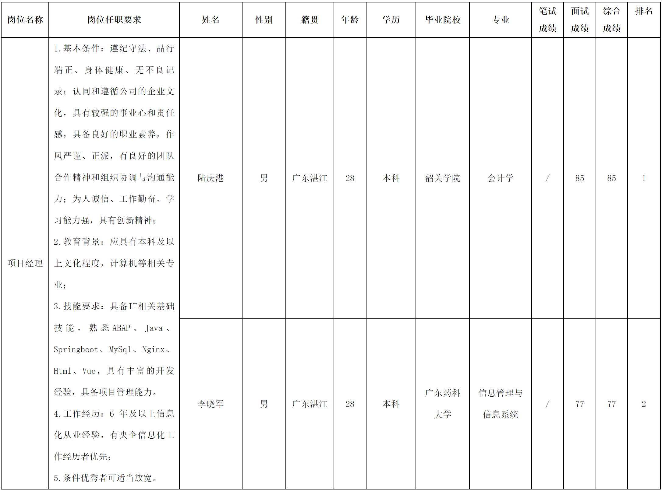 說明:面試者陸慶港為會計學(xué)專業(yè),經(jīng)實際考察,他具有6年軟件開發(fā)及項目管理經(jīng)驗,個人綜合能力較強(qiáng),符合本崗位的復(fù)合型人才要求。