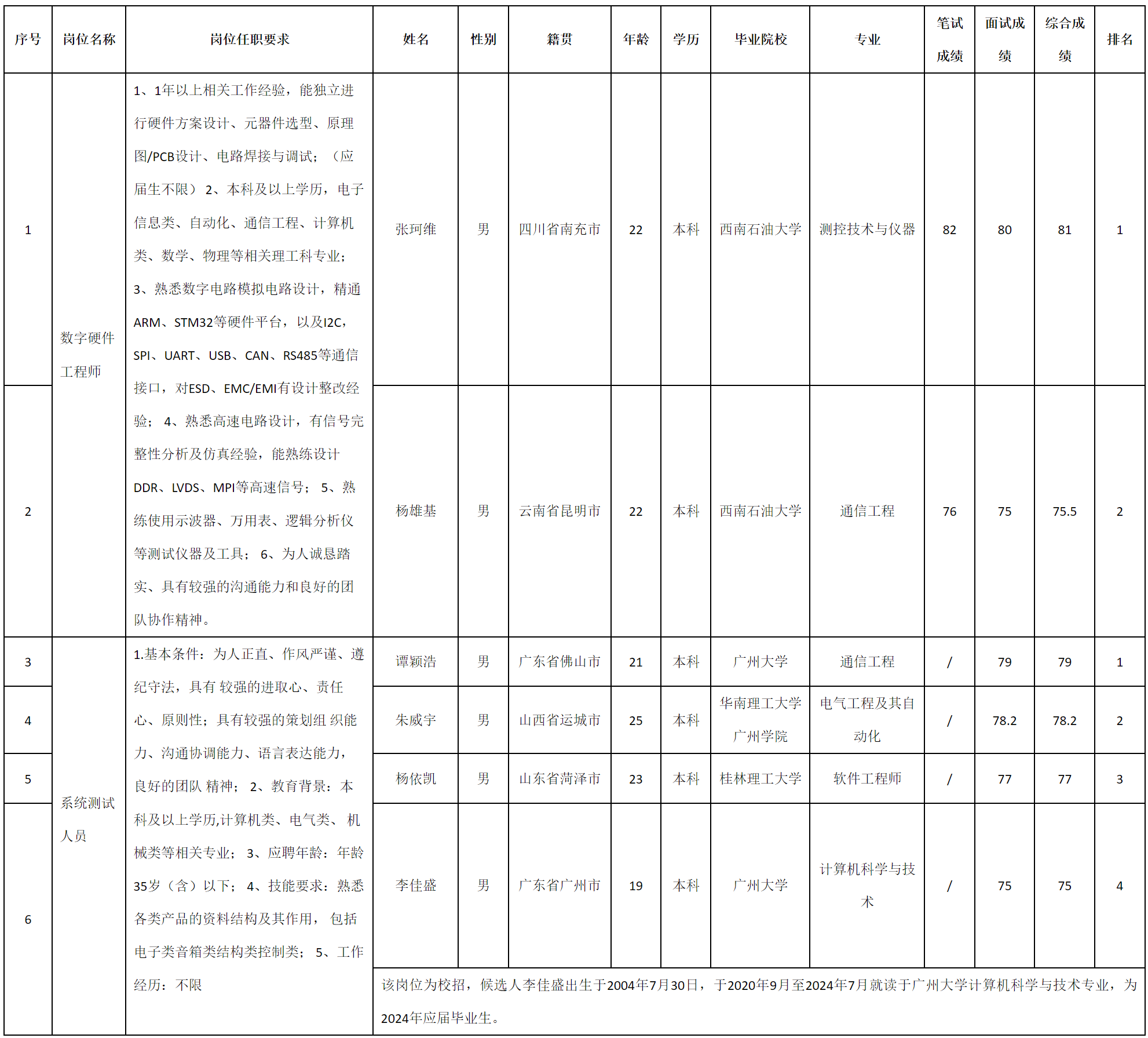 根據(jù)四川湖山電器股份有限公司發(fā)布的招聘公告及招聘相關(guān)規(guī)定,經(jīng)筆試、面試等程序,現(xiàn)將筆試(面試)成績予以公示。