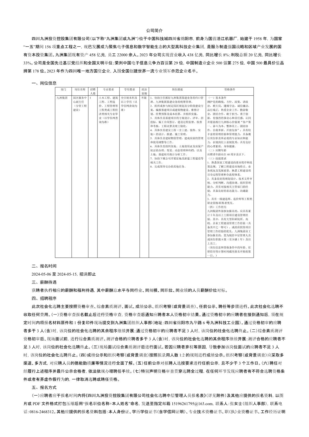 四川九洲投資控股集團(tuán)有限公司關(guān)于招聘中層管理人員的公告