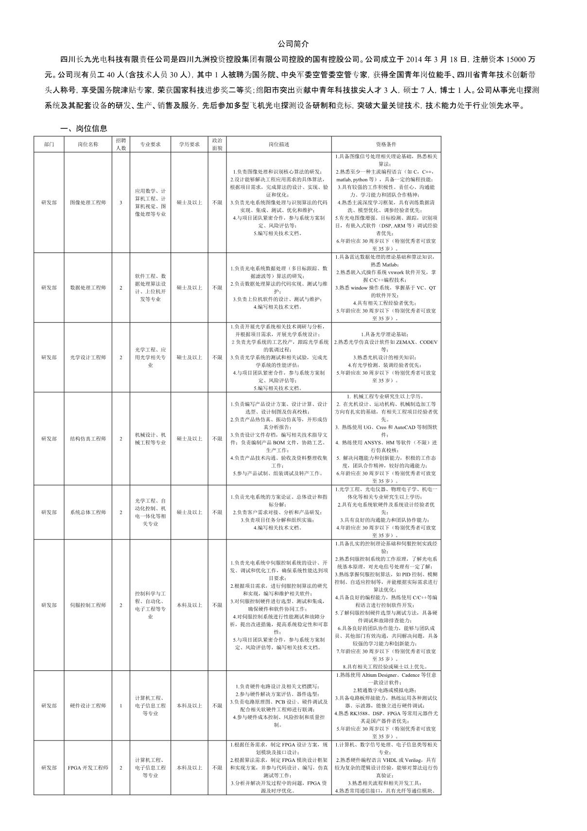 四川長九光電科技有限責(zé)任公司關(guān)于招聘圖像處理工程師等崗位的公告