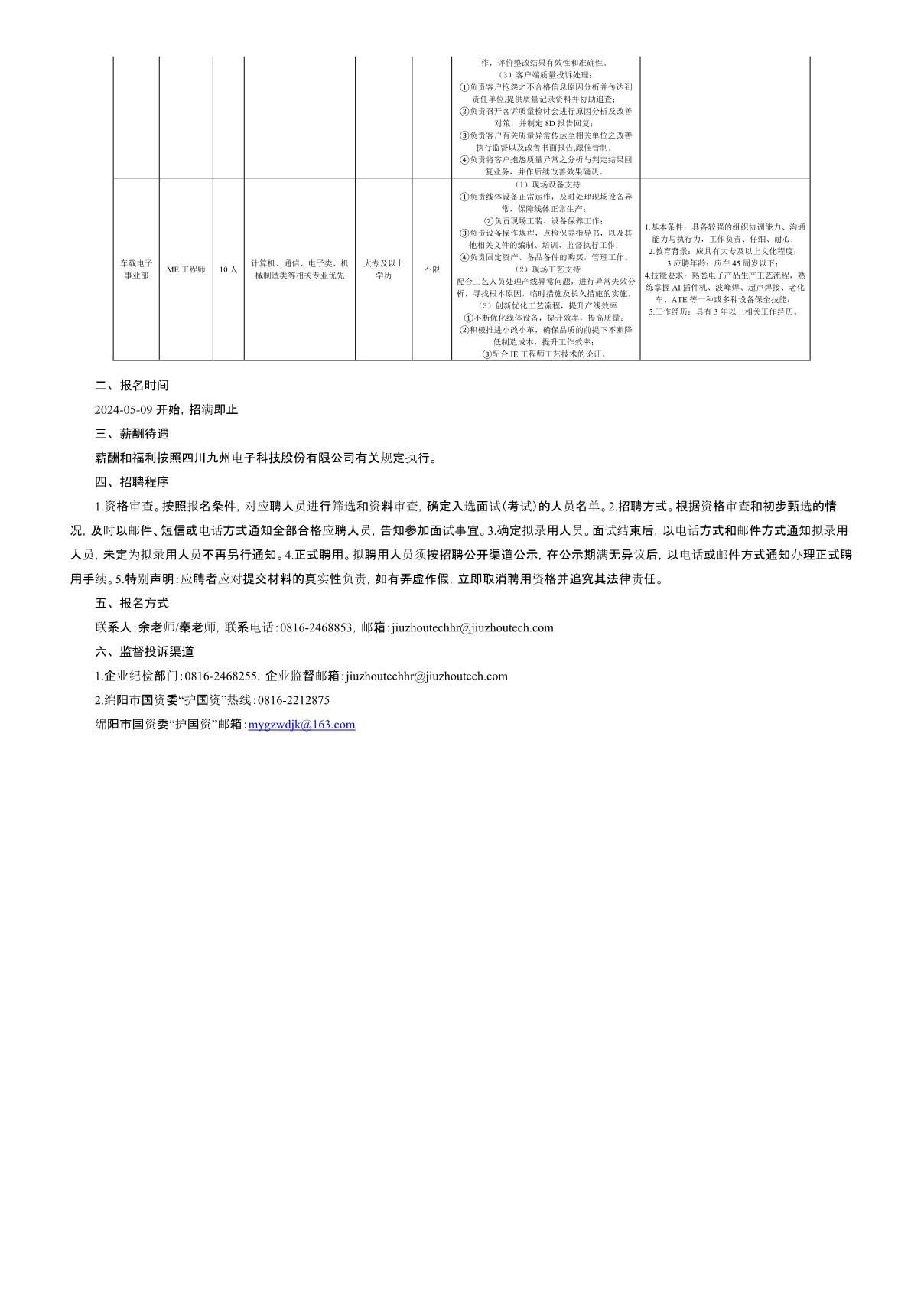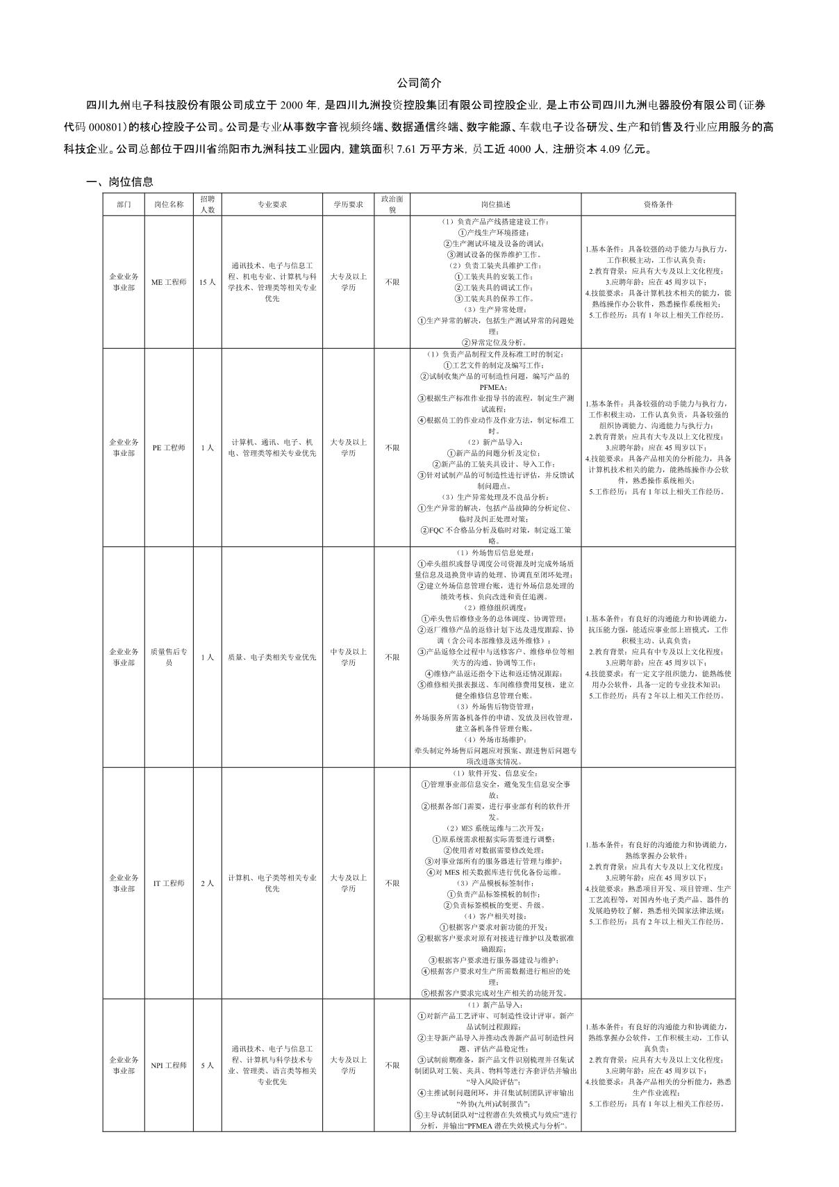 四川九州電子科技股份有限公司關(guān)于招聘ME工程師等崗位的公告