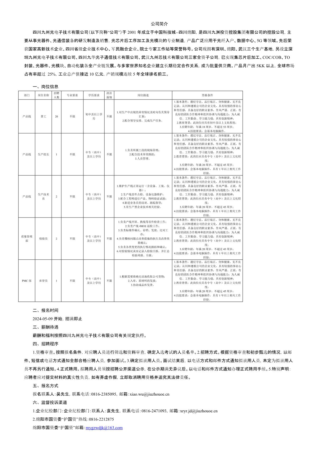 四川九州光電子技術(shù)有限公司關(guān)于招聘普工等崗位的公告