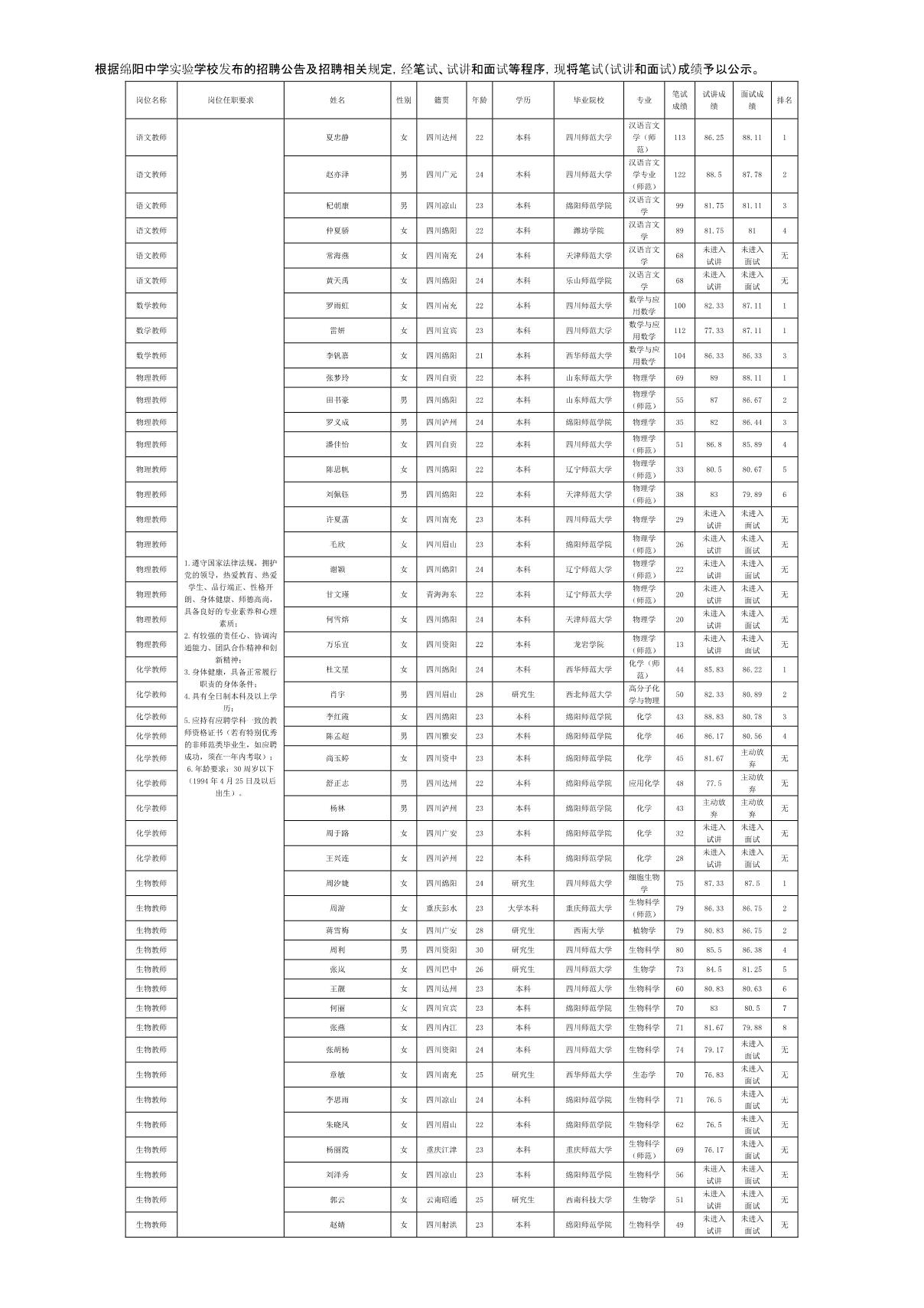 綿陽(yáng)中學(xué)實(shí)驗(yàn)學(xué)校關(guān)于招聘教師崗位測(cè)試成績(jī)的公示