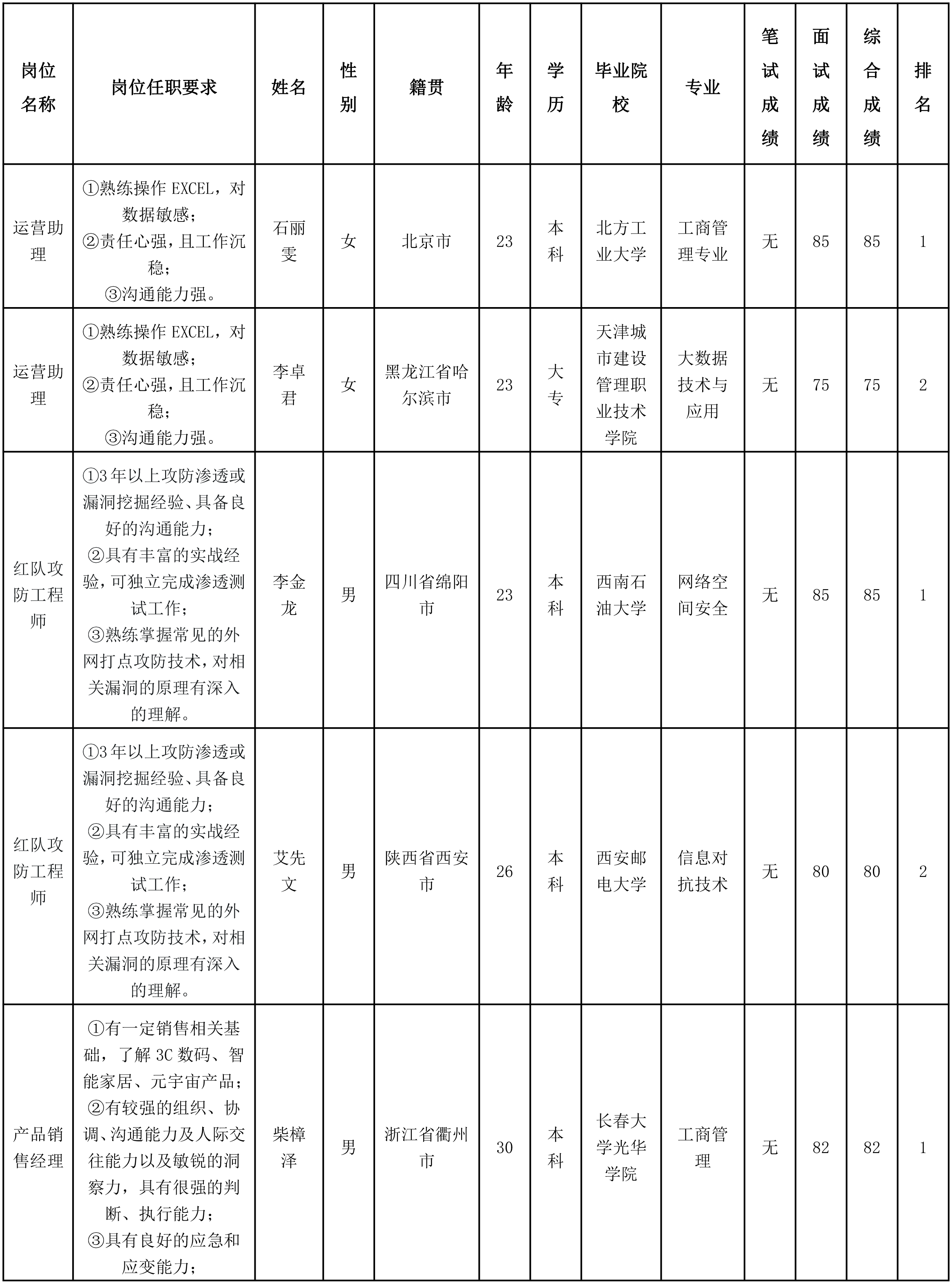 根據(jù)四川長(zhǎng)虹佳華信息產(chǎn)品有限責(zé)任公司發(fā)布的招聘公告及招聘相關(guān)規(guī)定,經(jīng)筆試、面試等程序,現(xiàn)將筆試(面試)成績(jī)予以公示。