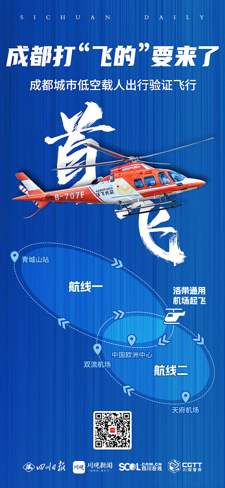 兩條航線的開啟,標(biāo)志著成都市城市低空載人出行驗(yàn)證飛行“首飛”順利完成。