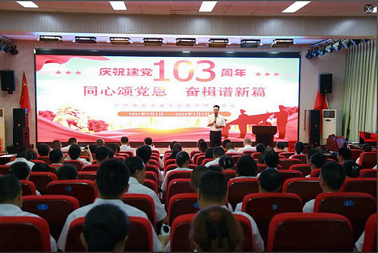綿陽新聞網(wǎng)訊 為了慶祝中國共產(chǎn)黨建黨103周年,弘揚黨的光輝歷程,傳承紅色基因,6月26日,綿陽市富樂實驗中學(xué)黨委在沈家壩校區(qū)學(xué)術(shù)廳舉行了以“同心頌黨恩,奮楫譜新篇”為主題的慶“七一”系列活動,政教處副主任沈青術(shù)主持活動。