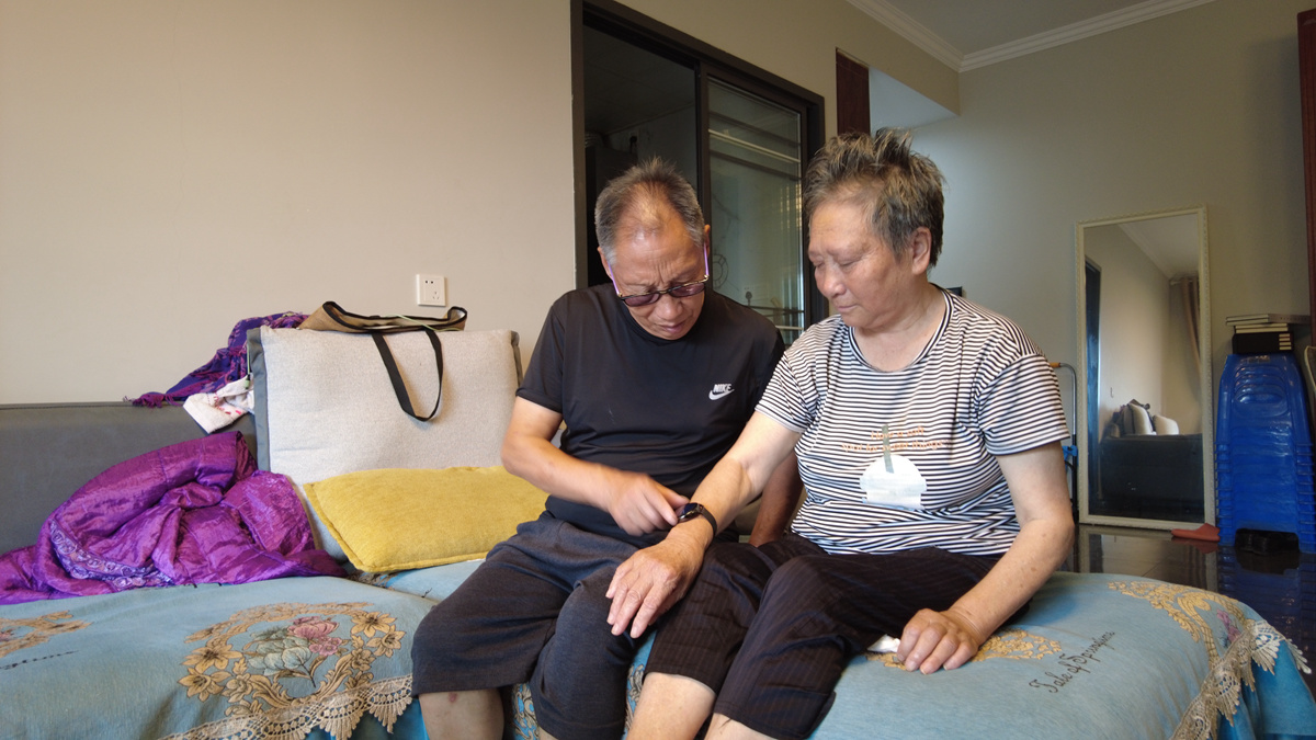 陳正貴和老伴羅大鳳通過智能手表查看心率、血壓。