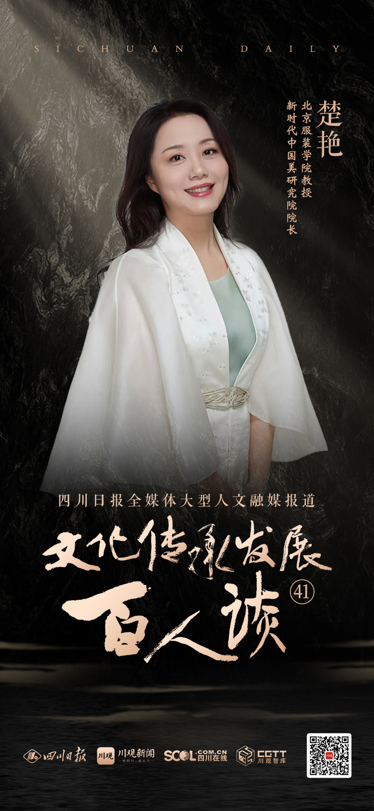 接受四川日?qǐng)?bào)全媒體“文化傳承發(fā)展百人談”大型人文融媒報(bào)道記者專訪時(shí),楚艷身穿她自己的原創(chuàng)服裝,得體大方的設(shè)計(jì)、溫潤(rùn)內(nèi)斂的色彩,與身后源于宋代的青綠背景相得益彰。“從業(yè)20多年來,我們一直有個(gè)夢(mèng)想,就是通過服裝這一載體,將中國(guó)色、中國(guó)形、中國(guó)紋,用豐富的手法和設(shè)計(jì)語言表現(xiàn)出來,向世界展示東方氣韻與中華之美。”楚艷說,這既是我們對(duì)中華優(yōu)秀傳統(tǒng)文化的自信與傳承,也是我們對(duì)于當(dāng)下文化的創(chuàng)新與表達(dá)。