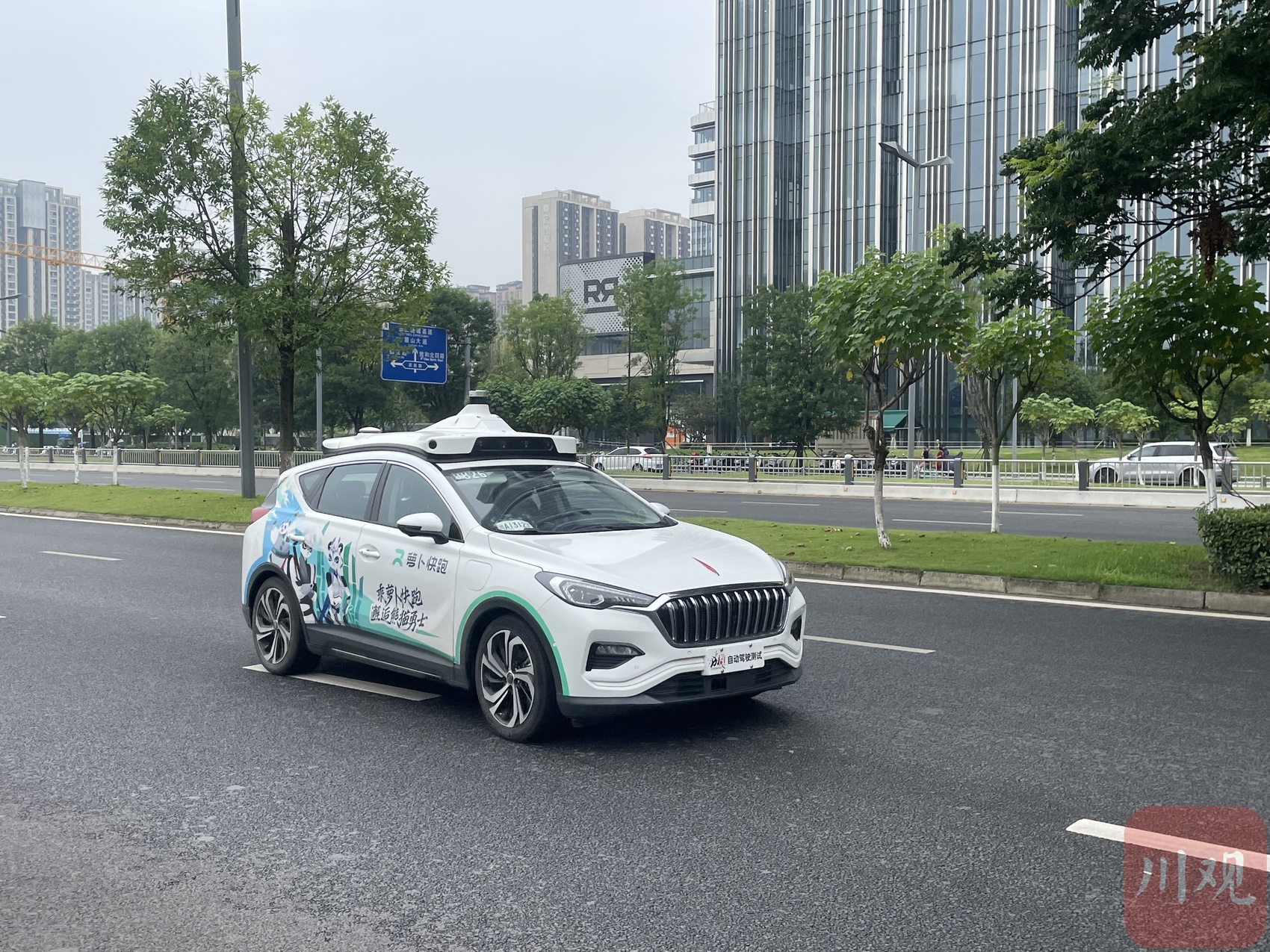 “您的車輛已到達(dá)起點(diǎn),請?jiān)?分鐘內(nèi)上車。”7月5日,記者在成都高新區(qū)叫了一輛自動駕駛出租車——用手機(jī)小程序下單,從新川國際會客廳出發(fā)到廣都地鐵口,5分鐘后一輛掛著“自動駕駛測試”招牌的小汽車駛來。這輛出租車與眾不同,車頂不是“TAXI”標(biāo)志,而是一套由攝像頭和雷達(dá)組成的感應(yīng)裝置,像給汽車戴了一頂小帽子。