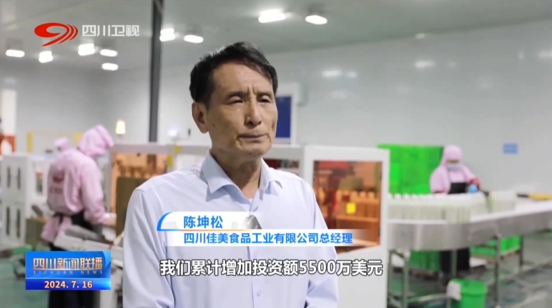 四川佳美食品工業(yè)有限公司總經(jīng)理 陳坤松:落地四川以來,我們累計增加投資額5500萬美元。當(dāng)?shù)卣畬τ诠S的發(fā)展相當(dāng)關(guān)心重視,也給工廠扶持引導(dǎo)獎勵激勵優(yōu)惠政策,作為外資企業(yè),有信心持續(xù)增資擴(kuò)產(chǎn),不斷做大做強(qiáng)。