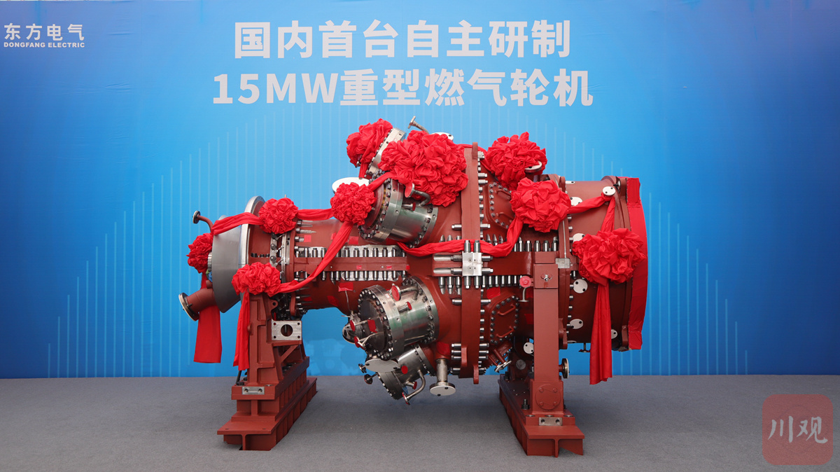 國內(nèi)首臺自主研制15兆瓦重型燃氣輪機在德陽正式下線。王攀 攝