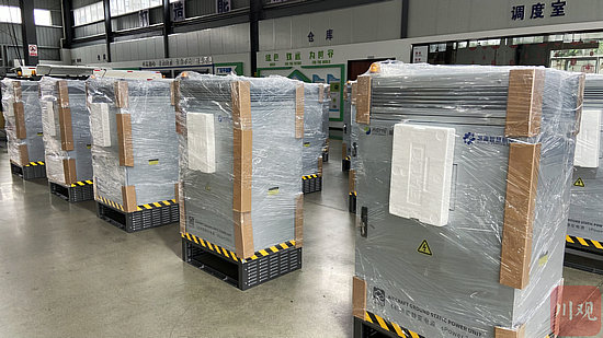 7月25日上午,在成都市成華區(qū)航天路的四川航電微能源有限公司車間里,剛組裝完成的數(shù)十臺儲能設(shè)備整齊排列,等待客戶提貨。