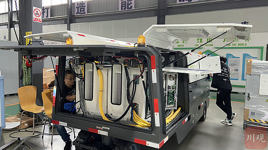 四川航電微能源有限公司車間,工作人員正在測試儲能設(shè)備。
