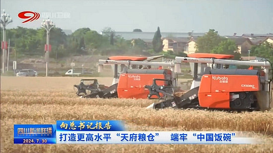 微風(fēng)拂青苗,良田育稻秧。機(jī)械全上陣,顆粒齊歸倉。如今的蜀鄉(xiāng)沃野,糧豐農(nóng)穩(wěn),五谷豐登。站在新的歷史起點(diǎn)上,四川將不負(fù)使命,勇?lián)赝?,推?dòng)“天府糧倉”朝著更高水平邁進(jìn),為端牢“中國(guó)飯碗”提供堅(jiān)實(shí)保障。
