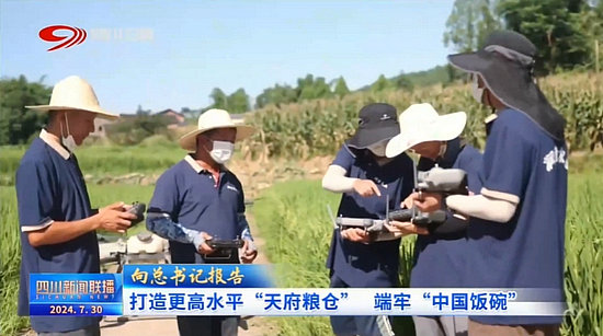 通過科技創(chuàng)新選育良種,確保“天府糧倉”更充盈。而日益完善的社會(huì)化服務(wù)則讓鄉(xiāng)親們?cè)趶氖罗r(nóng)業(yè)生產(chǎn)中更加省心。在達(dá)州市大竹縣童家鎮(zhèn)連片種植示范帶,由農(nóng)業(yè)公司派出的無人機(jī)正在為農(nóng)戶的稻田授粉。