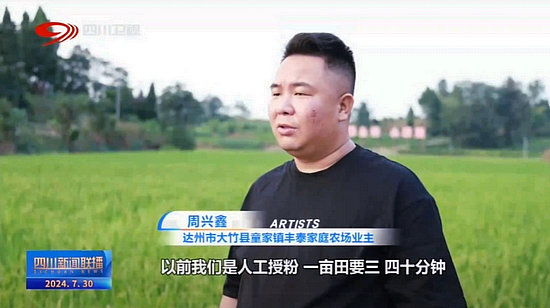 達(dá)州市大竹縣童家鎮(zhèn)豐泰家庭農(nóng)場(chǎng)業(yè)主 周興鑫:以前我們是人工授粉,一畝田要三、四十分鐘,現(xiàn)在無人機(jī)授粉了,一畝田只要幾分鐘。