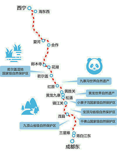 這就是川青鐵路——東起四川成都,西至青海西寧,是我國(guó)“八縱八橫”高鐵網(wǎng)中蘭州、西寧至廣州通道的組成部分。