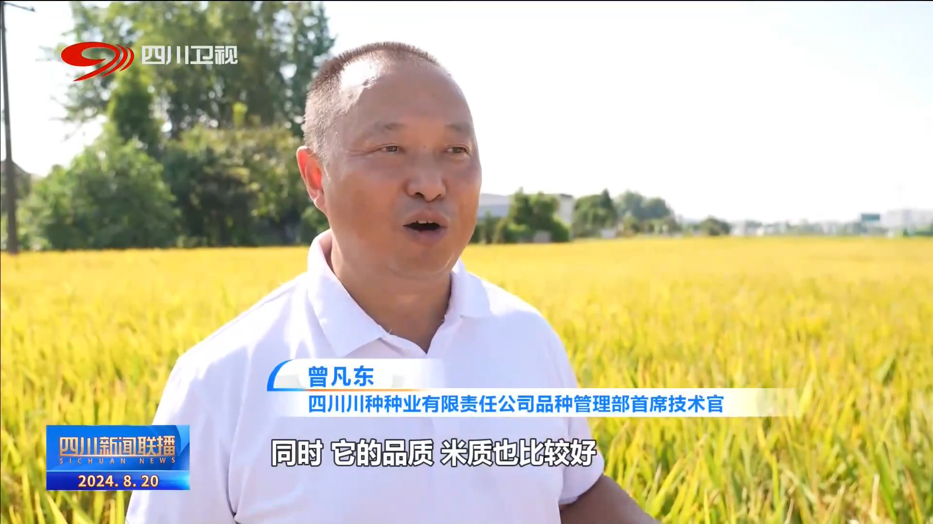 四川川種種業(yè)有限責(zé)任公司品種管理部首席技術(shù)官 曾凡東:有效穗的數(shù)量,種植戶容易拿起來,同時,它的品質(zhì)、米質(zhì)也比較好,能種的出來產(chǎn)量,然后米飯也比較好吃的這樣一個品種符合咱們散戶區(qū)和大戶區(qū)的種植的一個需求。