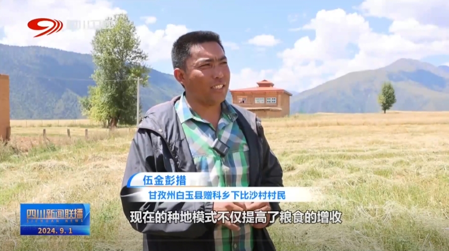 甘孜州白玉縣贈(zèng)科鄉(xiāng)下比沙村村民 伍金彭措:現(xiàn)在的種地模式,不僅提高了糧食的增收,還有效解決了人力問題,機(jī)器也收割成為了常態(tài),這樣家庭中的其他成員能夠外出務(wù)工,增加了我們的收入來源。