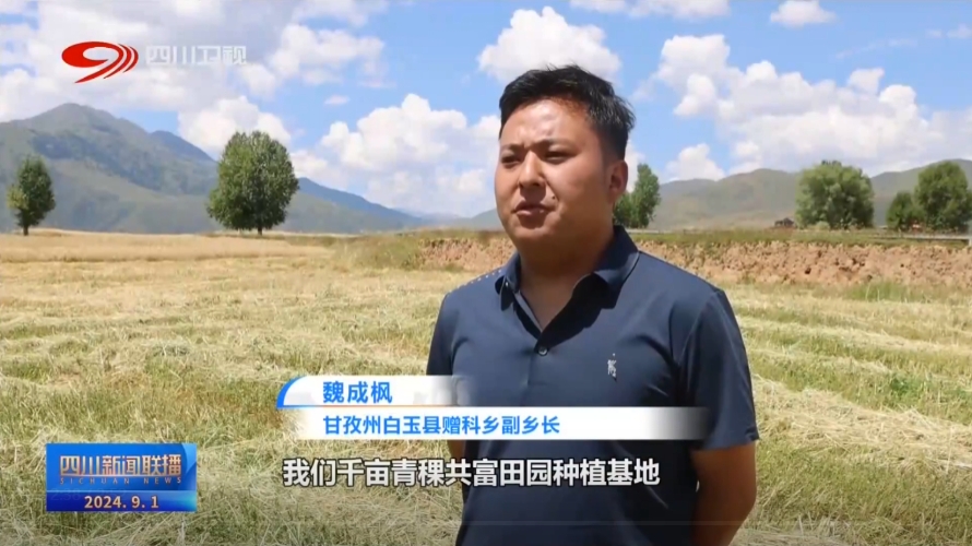 甘孜州白玉縣贈(zèng)科鄉(xiāng)副鄉(xiāng)長(zhǎng) 魏成楓:我們千畝青稞共富田園種植基地主要的運(yùn)行模式是“支部引領(lǐng)+集體經(jīng)濟(jì)代管+群眾參與”的這種模式,今年預(yù)計(jì)我們每畝的產(chǎn)量能夠達(dá)到400斤左右。