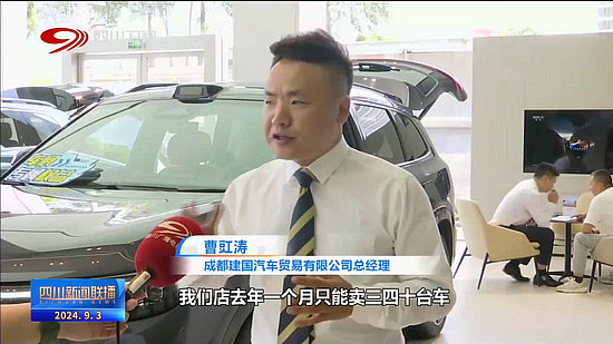 成都建國(guó)汽車(chē)貿(mào)易有限公司總經(jīng)理 曹豇濤:我們店去年一個(gè)月只能賣(mài)30、40臺(tái)車(chē),現(xiàn)在自從出了“以舊換新”政策以后,我們現(xiàn)在(8月)能賣(mài)到300臺(tái),這部分銷(xiāo)量里面,“以舊換新”的客戶能占到30%左右。