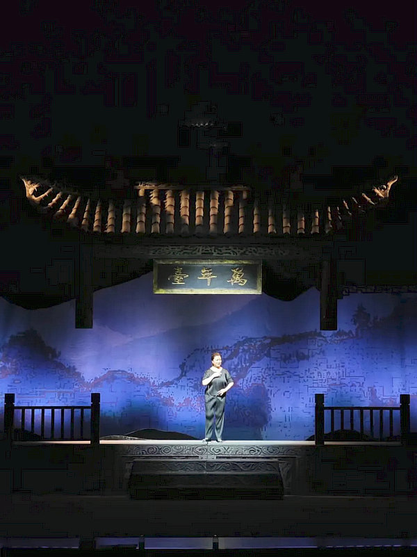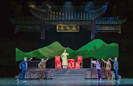 “月上九門開,不倒萬年臺……生旦凈末善惡丑,悲歡離合喜怒哀。”隨著臺上悠揚流暢的唱腔唱響,《最后一臺封箱戲》拉開戲幕。