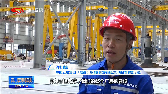 中國五冶集團(成都)鋼構(gòu)科技有限公司項目管理部部長 許祖鋒:現(xiàn)在已經(jīng)完成了我們的整個廠房的建設(shè),現(xiàn)在正在進行我們設(shè)備的主體施工,預(yù)計我們整個的項目(設(shè)備)調(diào)試是在9月15日,達產(chǎn)的日期是在9月30日。