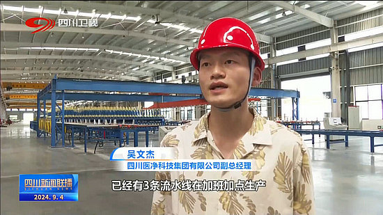 四川醫(yī)凈科技集團有限公司副總經(jīng)理 吳文杰:已經(jīng)有3條流水線在加班加點生產(chǎn),等到計劃的設(shè)備全部投產(chǎn)以后,預(yù)計年產(chǎn)值在5個億左右。