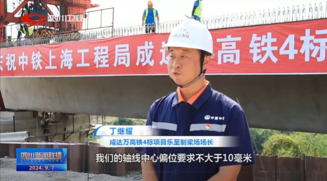 成達(dá)萬(wàn)高鐵4標(biāo)項(xiàng)目樂(lè)至制梁場(chǎng)場(chǎng)長(zhǎng) 丁繼耀:我們的軸線中心偏位要求不大于10mm,相連梁之間的高差也是不大于10mm的。技術(shù)人員利用全站儀和水準(zhǔn)儀對(duì)兩面的平整度和軸線都進(jìn)行監(jiān)控,確保整個(gè)線形跟高程都能滿足我們的設(shè)計(jì)要求。