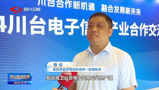 省經(jīng)濟(jì)合作局經(jīng)濟(jì)合作一處副處長(zhǎng) 陳佗:我們規(guī)上臺(tái)資電子信息企業(yè)總產(chǎn)值,占全省電子信息產(chǎn)業(yè)總產(chǎn)值四分之一,通過(guò)本次交流會(huì)的舉辦,將為兩地在電子信息產(chǎn)業(yè)領(lǐng)域深度合作搭建新的橋梁,招引和落地更多的臺(tái)商臺(tái)企投資四川。