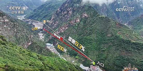 而在最早的設計勘察時,該路段高差太大,也就是隧道進、出口直線距離僅1600米,高度差卻有213米。如果按照這種高度修建直線隧道,坡度將高達13。3%,這將遠遠超過高速公路設計最大縱坡6%的坡度要求。如何解決這一問題呢?