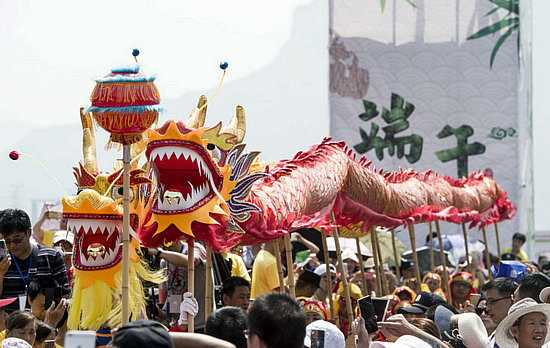 屈原故里端午文化節(jié)上進(jìn)行的舞龍表演。新華社記者 肖藝九 攝