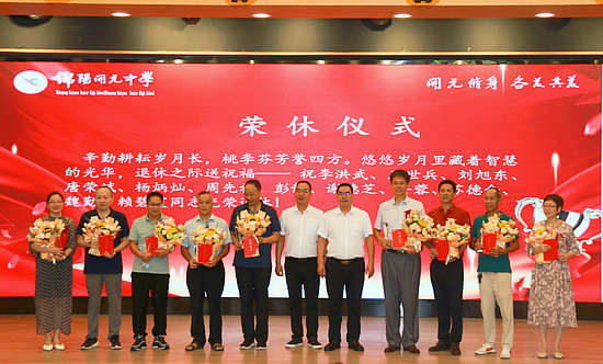 首先,舉行榮休儀式。新入職教師為退休教師佩戴光榮退休紅花,工會(huì)主席任明生為退休教師獻(xiàn)上鮮花,黨委副書記、校長敬正雄頒發(fā)退休榮譽(yù)證書,黨委書記王力頒發(fā)光榮退休獎(jiǎng)杯。