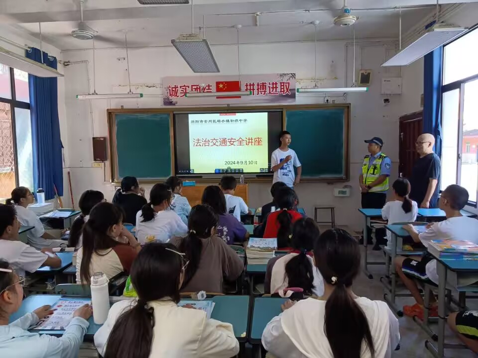 9月10日上午,安州區(qū)塔水鎮(zhèn)初級(jí)中學(xué)邀請(qǐng)塔水鎮(zhèn)派出所和交警大隊(duì)塔水支隊(duì)警官走進(jìn)校園,開展了以“開學(xué)第一課 安全護(hù)成長”為主題的2024年秋法治宣傳教育與交通安全講座。