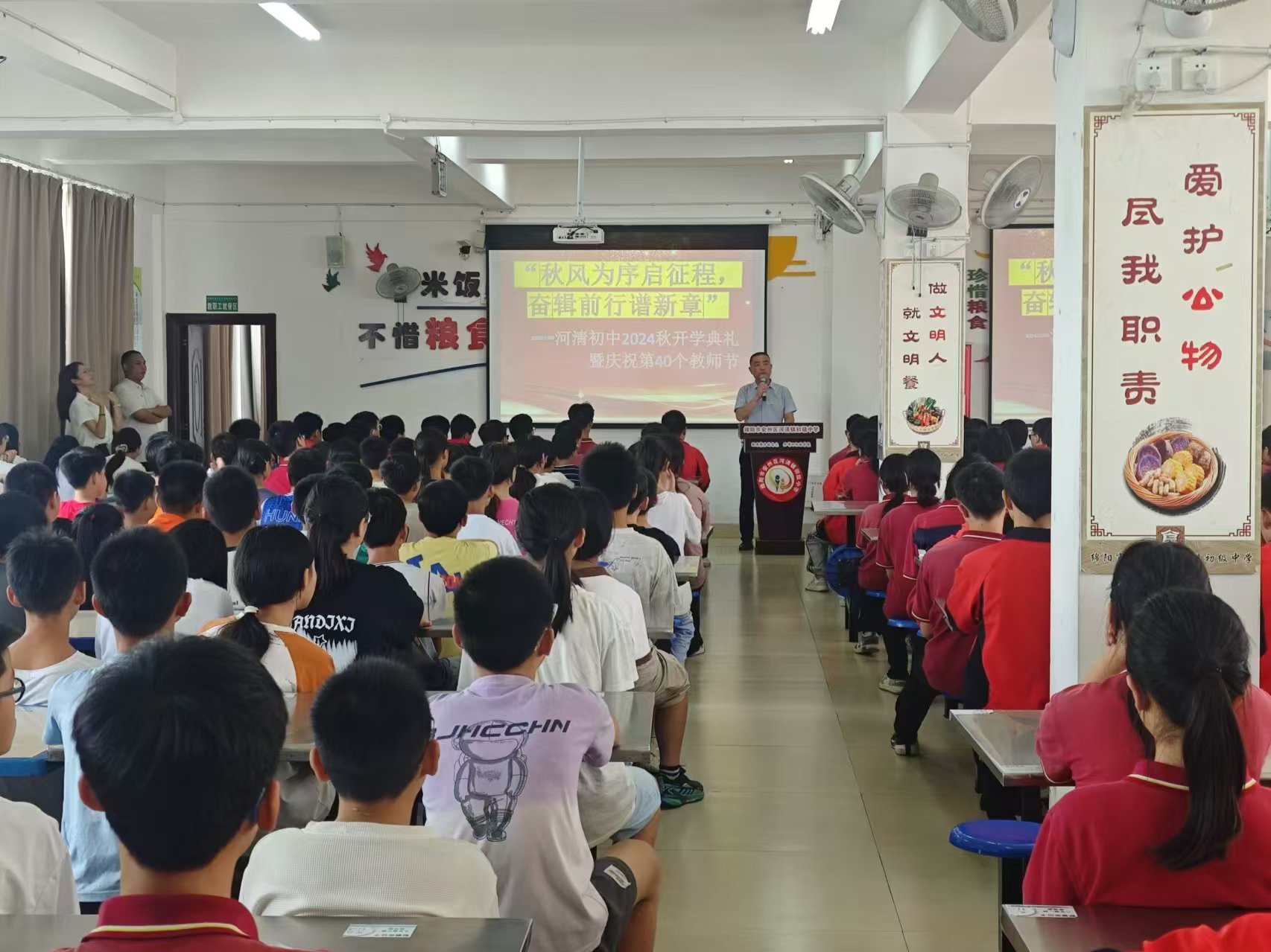 9月10日上午,安州區(qū)河清初中隆重舉行了以“秋風(fēng)為序啟征程,奮楫前行譜新章”為主題的2024年秋開學(xué)典禮暨慶祝第40個教師節(jié)活動。全校260余名師生參與了開學(xué)典禮,活動旨在營造濃厚的開學(xué)氛圍,激勵全校師生以飽滿的熱情和昂揚的斗志投入到新學(xué)期的學(xué)習(xí)與工作中。