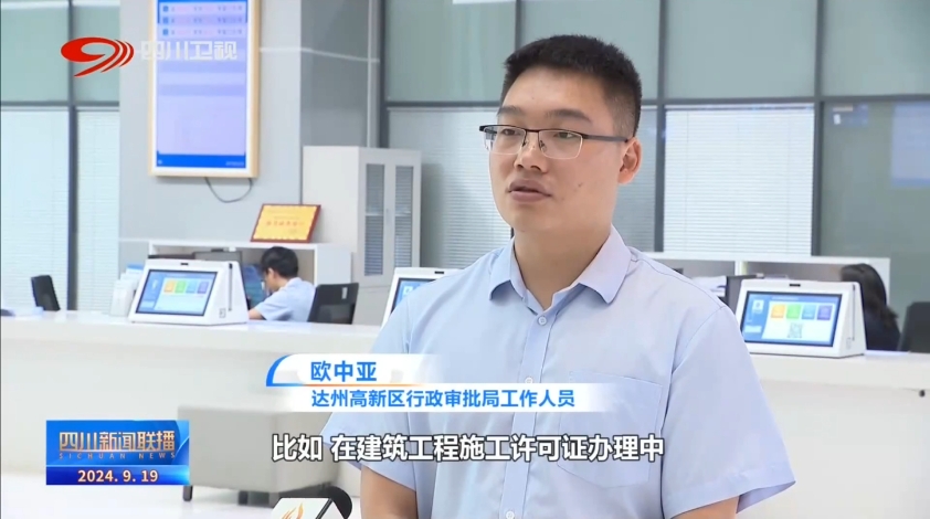 達(dá)州高新區(qū)行政審批局工作人員 歐中亞:比如,在建筑工程施工許可證辦理中,我們將質(zhì)量監(jiān)督備案、安全監(jiān)督備案等事項(xiàng)與施工許可并聯(lián)審批,一次辦結(jié)。整個(gè)過程由法定的20個(gè)工作日,縮短為一個(gè)工作日。