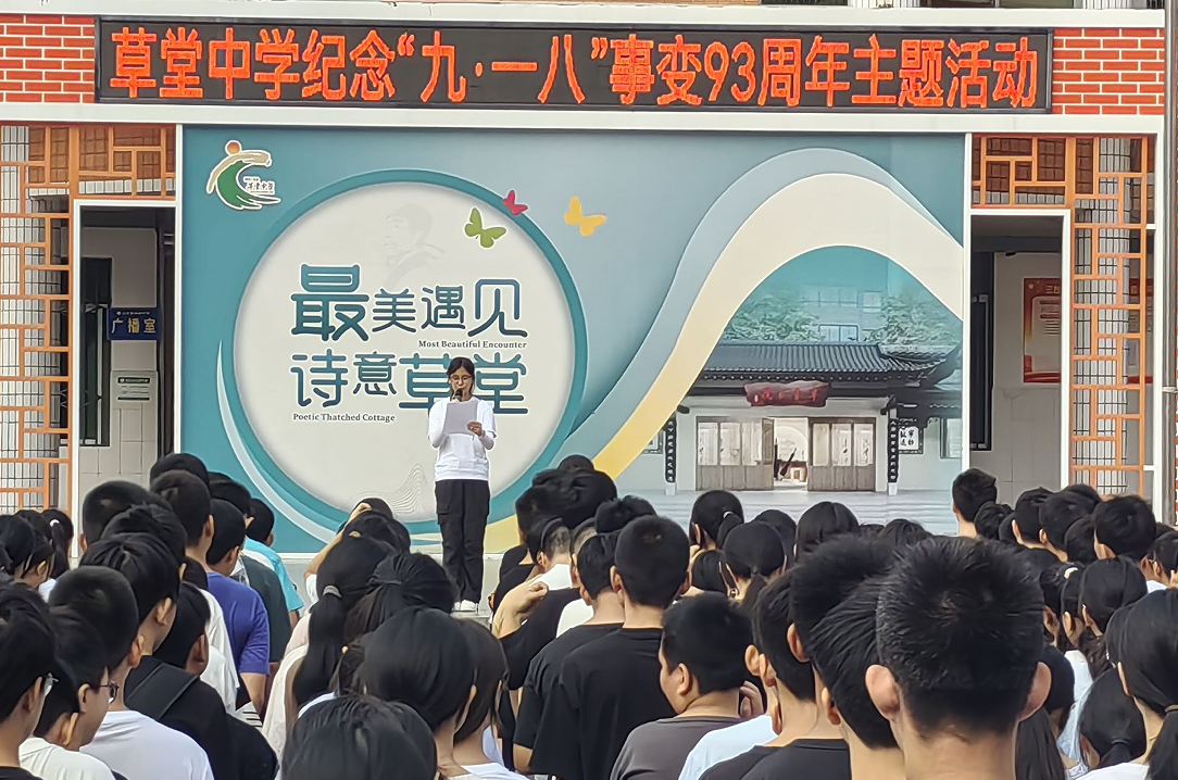 在“九一八事變”93周年即將到來之際,為了引導(dǎo)全體師生銘記抗日戰(zhàn)爭歷史,銘記為民族英雄獻身的烈士,勿忘國恥,繼續(xù)奮斗,三臺縣草堂中學(xué)舉行了以“銘記歷史 勿忘國恥”為主題的愛國主題升旗儀式。