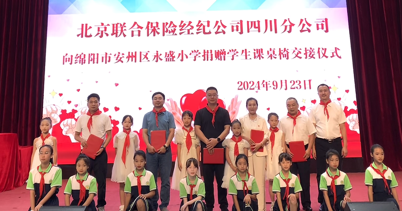 捐贈現場,北京聯合保險經紀公司四川分公司向永盛小學定向捐贈升降課桌椅若干。雙方代表在全場師生見證下舉行了捐贈交接儀式。