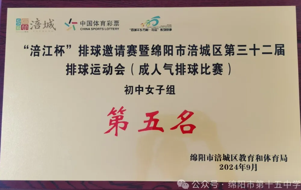 近日,綿陽市第十五中學(xué)女子排球隊(duì)在“涪江杯”排球邀請(qǐng)賽暨涪城區(qū)第三十二屆排球運(yùn)動(dòng)會(huì)上取得初中女子組第五名的好成績(jī)。