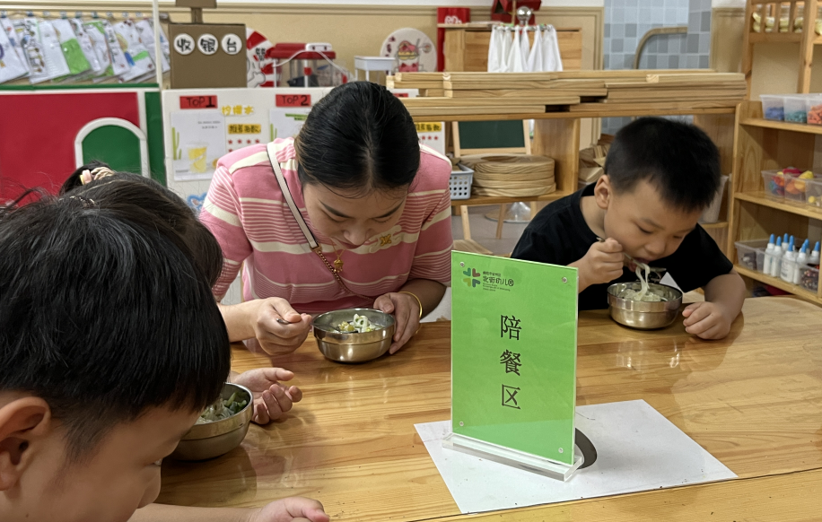 之后,家長走進(jìn)各班級陪餐,親身體驗(yàn)孩子們的日常飲食。家長用耳傾聽、用眼觀察、用口品味、用心感受……一道道嚴(yán)謹(jǐn)?shù)墓ば蜃尲议L感受到幼兒園對幼兒膳食安全的高度重視,一份份香噴噴的飯食讓家長建立起對幼兒園的認(rèn)可和信任。