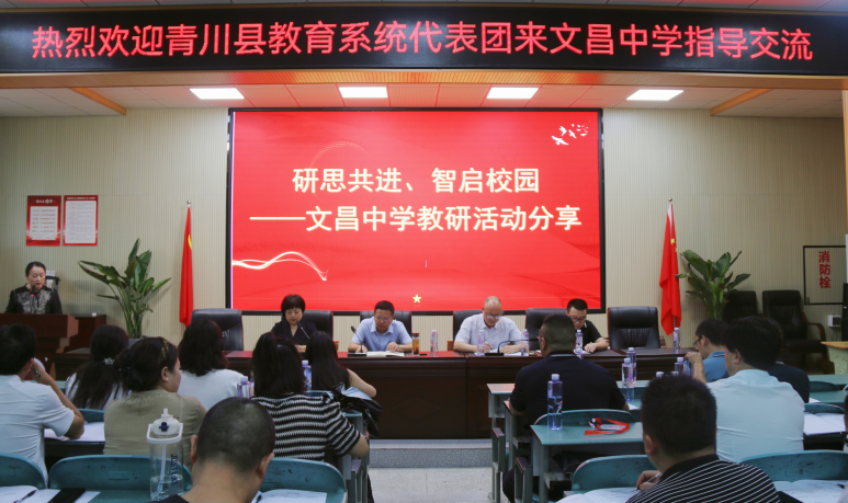 文昌中學(xué)黨委副書記、校長李楊對(duì)青川縣教育代表團(tuán)的到來致以最誠摯的歡迎,以專題片的形式展現(xiàn)該校的辦學(xué)理念、教學(xué)設(shè)施、師資力量、教學(xué)特色等。他在以“堅(jiān)持立德樹人根本任務(wù),奮力提高人才培養(yǎng)質(zhì)量”為主題的分享交流中談到:“德者,本也”。立德樹人是教育的根本,文昌中學(xué)始終堅(jiān)持以人為本,以提高人才培養(yǎng)質(zhì)量為核心,關(guān)注每一位學(xué)生的全面發(fā)展,以期培養(yǎng)更多能夠適應(yīng)社會(huì)發(fā)展需求的高素質(zhì)人才。