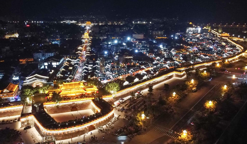 四川西昌市建昌古城夜景(無人機(jī)照片)。新華社記者王曦 攝