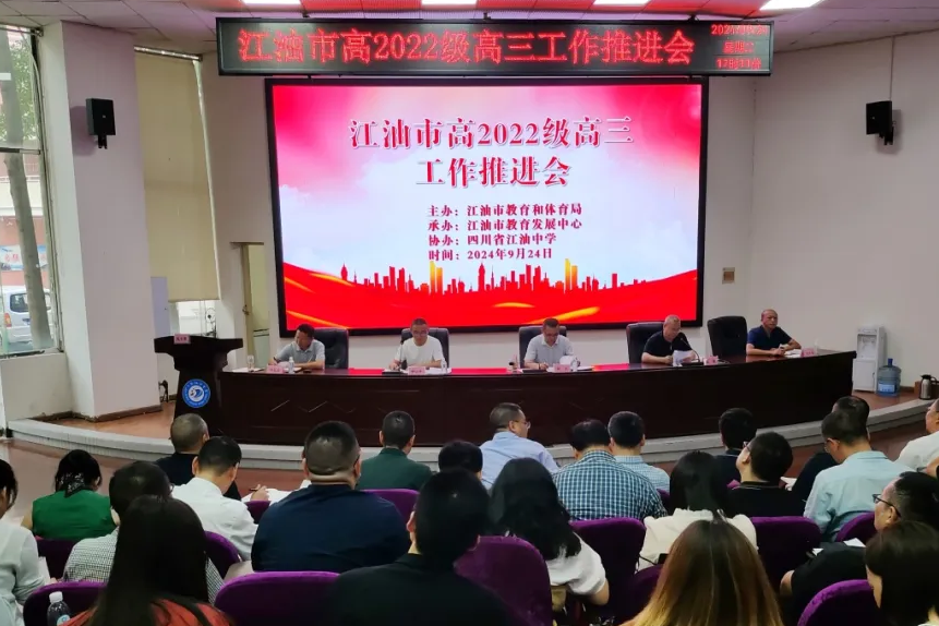 9月24日下午,江油市高三工作推進(jìn)會在江油中學(xué)召開。參會人員有江油市教體局主要領(lǐng)導(dǎo)、高中教育、職業(yè)教育分管領(lǐng)導(dǎo),教育一股、職成股股長、分管教學(xué)副股長,全市高(職)中學(xué)校書記、校長,高三分管領(lǐng)導(dǎo)、年級主任,備課組長、班主任代表及市教育發(fā)展中心負(fù)責(zé)人和高中學(xué)科教研員等。江油市教體局教育一股股長鐘以平主持會議。