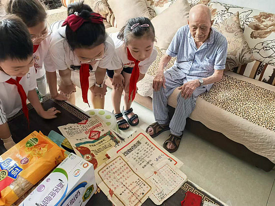 內(nèi)江市威遠縣組織少先隊員看望抗戰(zhàn)老兵