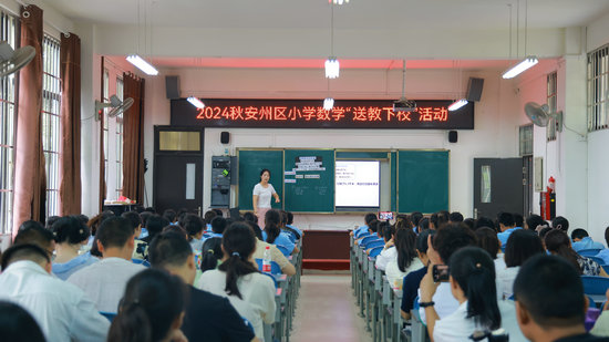 綿陽新聞網(wǎng)訊 為了提升安州區(qū)小學(xué)數(shù)學(xué)課堂教學(xué)整體水平,提高小學(xué)數(shù)學(xué)教師學(xué)科專業(yè)素養(yǎng),促進(jìn)城鄉(xiāng)教育均衡發(fā)展,9月27日上午,安州區(qū)“送教到校助成長,提升素養(yǎng)促均衡”為主題的“2024秋小學(xué)數(shù)學(xué)送教下校”活動在秀水鎮(zhèn)第一小學(xué)舉行,本次活動由安州區(qū)教研室主辦,安州區(qū)秀水鎮(zhèn)第一小學(xué)承辦。區(qū)教研室主任羅勇、區(qū)數(shù)學(xué)教研員呂涪湘,秀水一小、塔水二小全體數(shù)學(xué)老師,安州區(qū)其他學(xué)校部分?jǐn)?shù)學(xué)老師近百人參加了本次活動。
