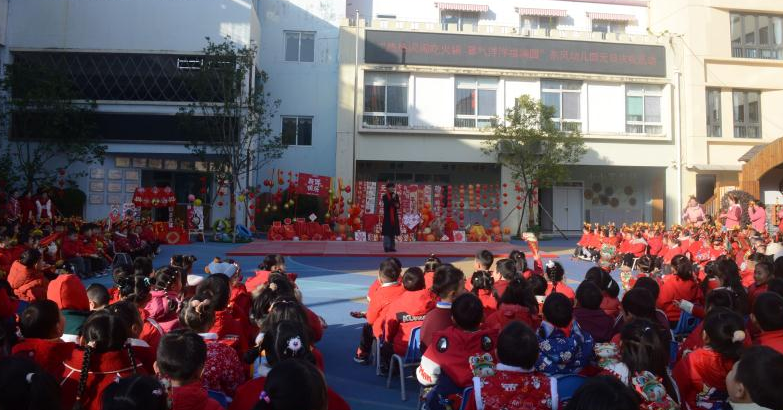 “熱熱鬧鬧吃火鍋、喜氣洋洋福滿園”迎元旦文藝演出在園長石春艷的祝福聲中拉開序幕。